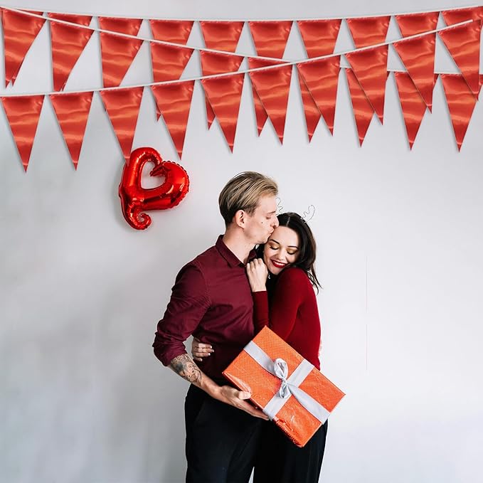 40M/130FT Red Triangle Pennant Banner Flag Metallic Fabric Bunting Garland for Christmas Graduation Wedding Engagement Anniversary Bachelorette Birthday Bridal Shower Valentines Hen Party Supplies