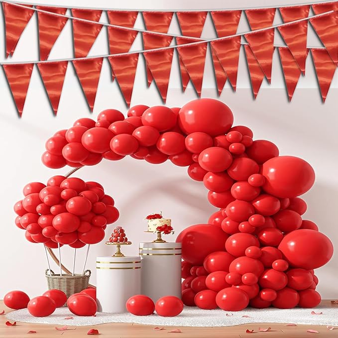 - 【Red Pennant Bunting Set】: The total length of the Red Triangle banner is 130 feet, divided into4 strips, each 32.8 feet long. Each Pennant Banner 80Flag Size: 7.87''/20cm width x 11.8''/30cm height for birthday decorations many occasions, and so on