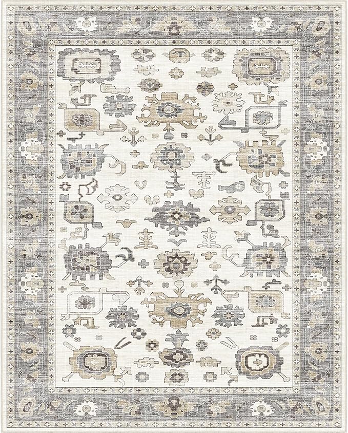 8x10 Washable Vintage Area Rug - Bedroom, Dining Room and Home Office - Distressed Oriental Reto Indoor Floor Carpet Rug(Cream Grey, 8x10)