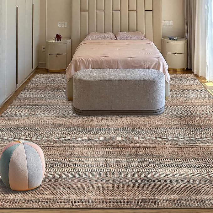 Area Rug 7x9 Antique & Distressed Accent Rugs for Living Room, Bedroom, Entryway & Hallway, No Shed High Traffic Area Home Decor Rug, Low Pile, Soft (Terracotta/Taupe, 7x9)