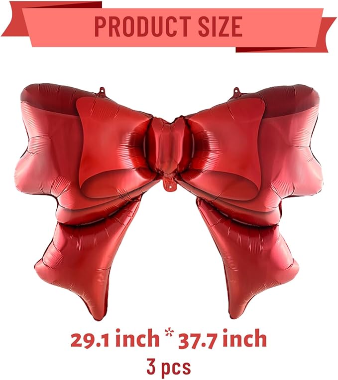 FBQ 3 Pcs Red Bow Balloons Bow Theme Girl Birthday Baby Shower Jumbo Foil Balloon Party Decorations Supplies