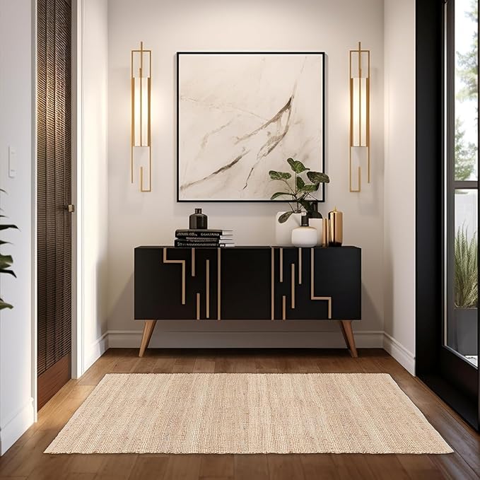 - Soft Yet Durable: Combining jute’s strength and cotton’s softness, this rug provides a resilient, comfortable surface ideal for high-traffic areas like living rooms, dining rooms, hallways, and entryways, offering a soft feel underfoot.
