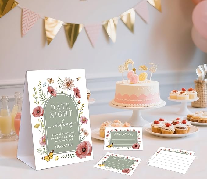 Sage Green Floral Themed Share Your Date Night Ideas Game, 1 Tabletop Sign and 50 Cards, Bridal Shower Games 50 Guests, Wedding Shower Games for Bachelorette Night Wedding Event & Party Supplies