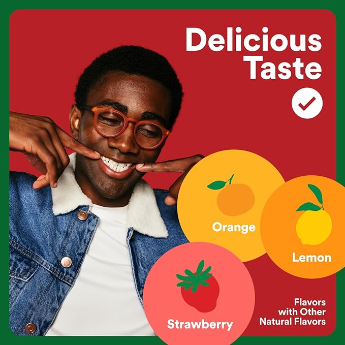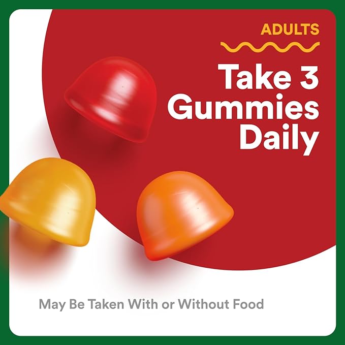 - DELICIOUS TASTE: Strawberry, Orange, and Lemon Flavors with Other Natural Flavors. Adults take 3 gummies daily. May be taken with or without food.