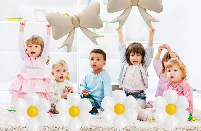 FBQ 6 Pcs White Daisy Flower Balloons and 3 Pcs White Bow Foil Balloon Flower Theme Girls Birthday Baby Shower Wedding Party Decorations(9 Pcs)