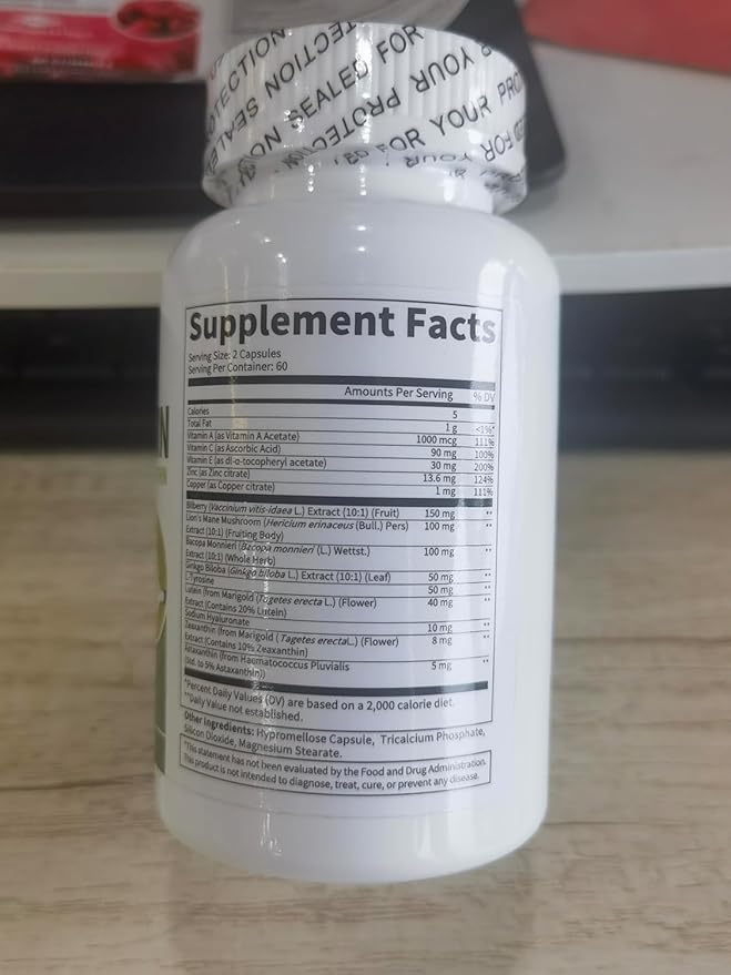 - Dual Eye & Brain Support: These eye vitamins and minerals supplement For Lens Clarity & Eye Health, includes Lutein, Zeaxanthin, Zinc, Copper, Vitamin A, Vitamin C, Vitamin E & billberry extract. Lutein & Zeaxanthin to protect eye health, with Lion's Mane Mushroom and Bacopa Monnieri to enhance memory, focus, and cognitive function