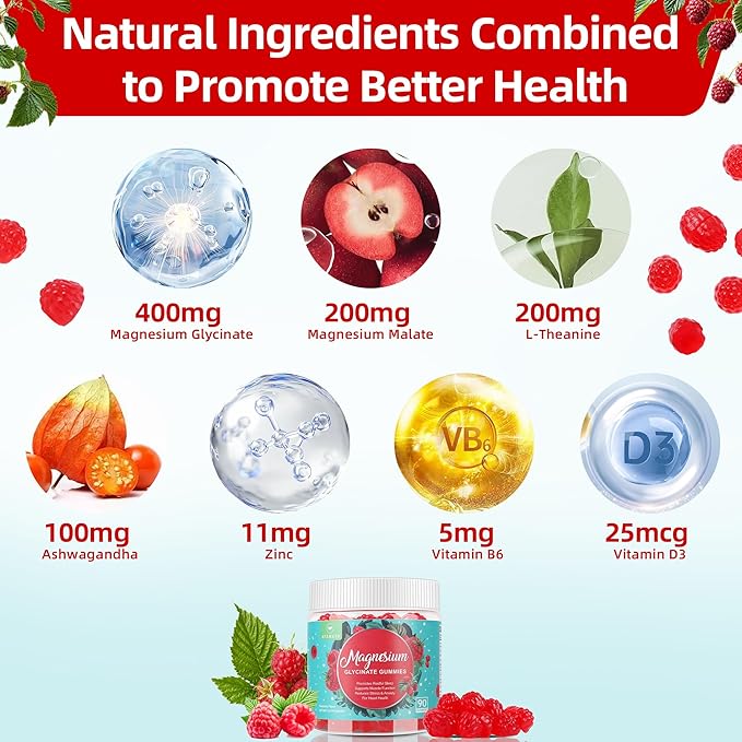 - 2-IN-1 MAGNESIUM COMPLEX: DEEP SLEEP & STRESS RELIEF: This magnesium glycinate gummies feature a scientifically balanced formula with 400 mg magnesium glycinate and 200 mg magnesium malate per serving. Magnesium promotes natural melatonin production for faster sleep onset and improved sleep quality, while glycine helps calm the mind by regulating neurotransmitters like GABA. The chelated form ensures better absorption, and magnesium malate works to combat physical fatigue, leaving you feeling relaxed inside and out. This unique formula ensures you enter an optimal state of relaxation for better sleep.