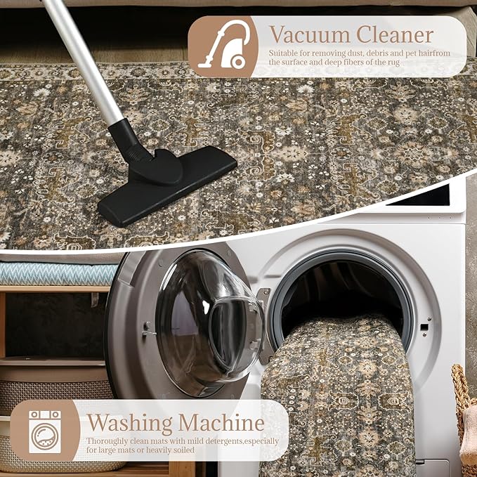 • 【Non-Slip & Non-Shedding Rug】Engineered for active family spaces, this washable rug features reinforced grip backing rigorously tested to minimize shifting on most hard floor surfaces. The textured underside provides added stability during playtime with kids and pets, while offering secure footing for seniors. For optimal safety, we recommend pairing with rug pads on smooth surfaces like tile or hardwood.