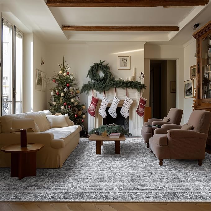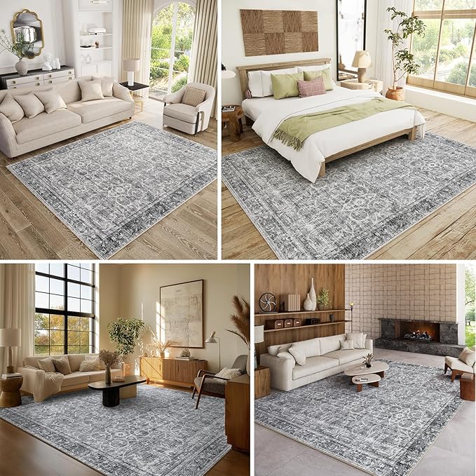 8x10 Washable Area Rugs Ultral Soft Non-Slip Stain Resistant Vintage Boho Large Carpet for High-Traffic Living Room & Dining Room
