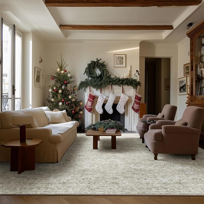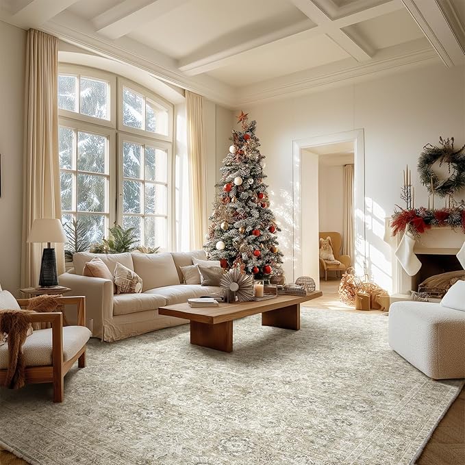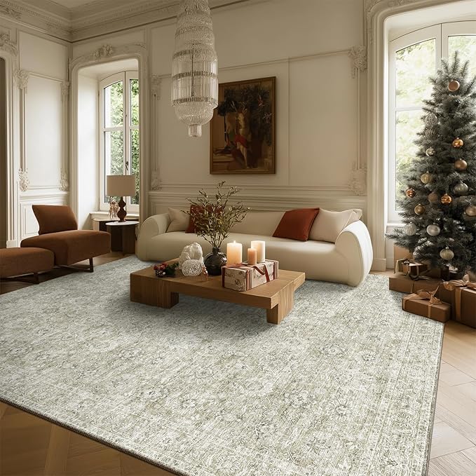 8x10 Washable Area Rugs Ultral Soft Non-Slip Stain Resistant Vintage Boho Large Carpet for High-Traffic Living Room & Dining Room