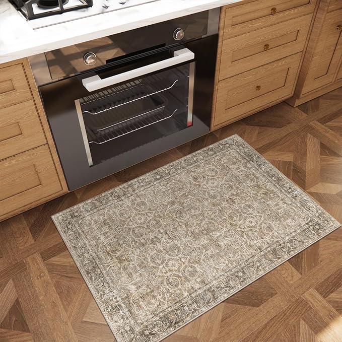 Washable 2'x3' Non Slip Rug Vintage Soft Low Pile Lightweight Boho Area Rugs for High-Traffic Areas (Entryway, Kitchen, Hallway), Farmhouse Decor