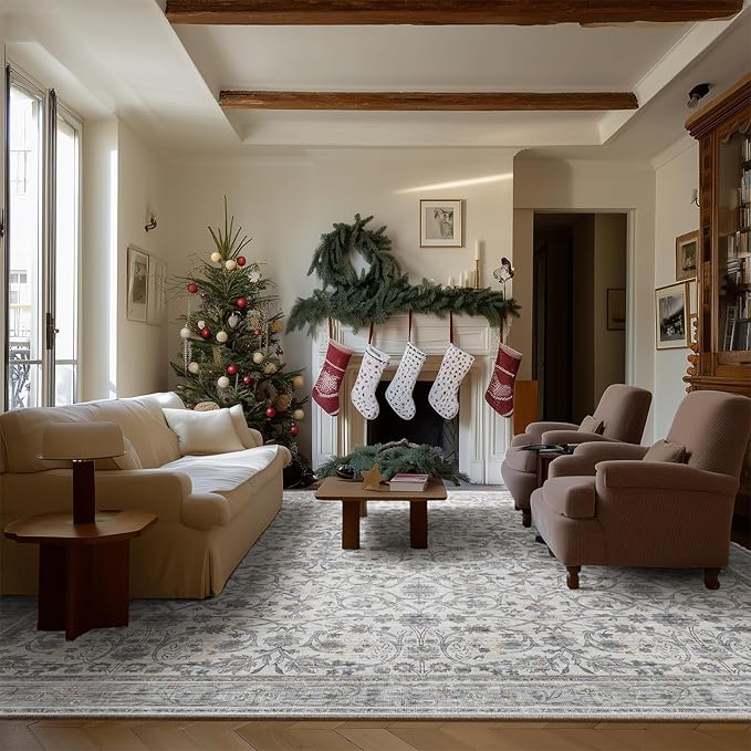 8x10 Washable Area Rugs Ultral Soft Non-Slip Stain Resistant Vintage Boho Large Carpet for High-Traffic Living Room & Dining Room