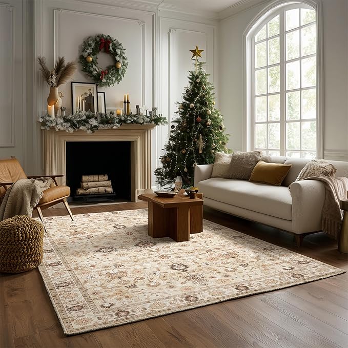 Washable Area Rugs 5'x7' Non-Slip Vintage Boho Distressed Fade Resistant Low Pile Carpet for High-Traffic Living Room, Bedroom & Dining Room