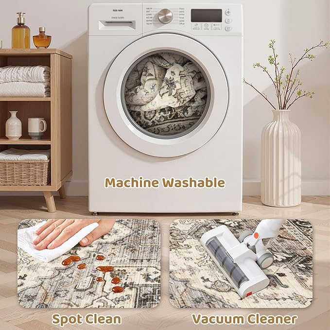 - Effortless Machine Washable Care: Toss this ultra-thin rug in your washing machine (cold water, gentle cycle) to refresh after spills or pet accidents. The low pile design prevents dirt buildup, making daily cleanup as simple as a quick vacuum. Built for high-traffic areas like kitchens and entryways, it withstands busy family life