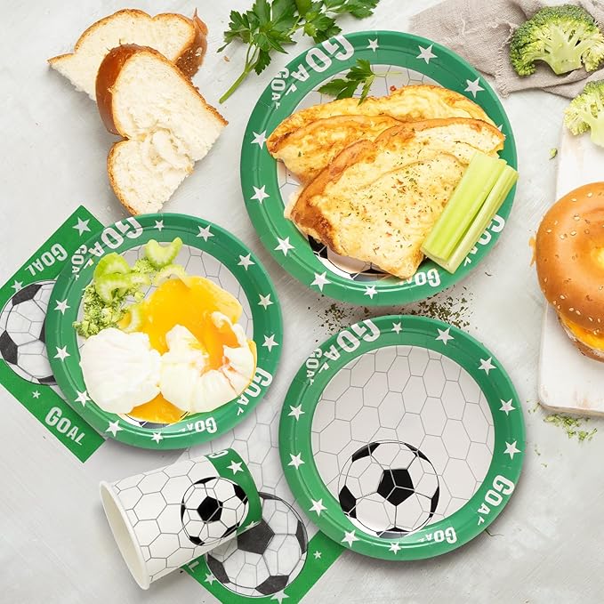 - ⚽【Extensive Set Combination】- Our party disposable tableware comes with, 24 7-inch plates, 24 9-inch plates, 24 cups, and 24 13-inch paper napkins. It can satisfy the dining needs of 24 guests.
