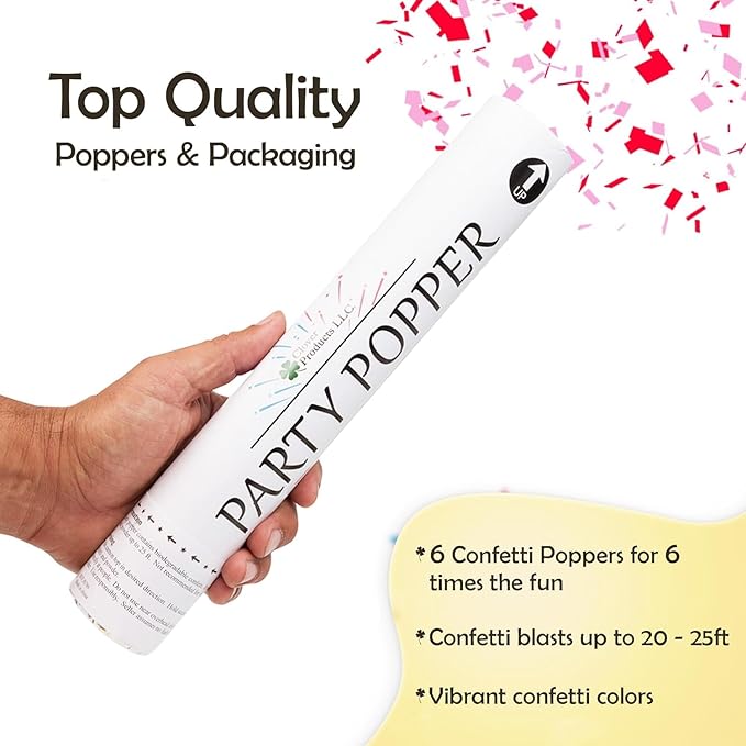 - THE PARTY POPPER FOR EVERY OCCASION Whether it's a wedding, birthday, graduation, gender reveal, or New Year’s bash, this 6-pack of party poppers is your go-to celebration tool. Safe for kids and adults, indoors or outdoors, and designed to delight any crowd