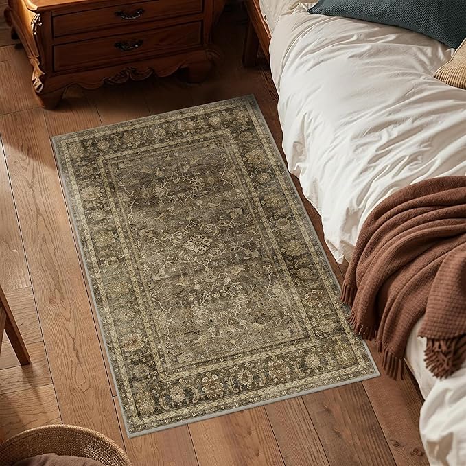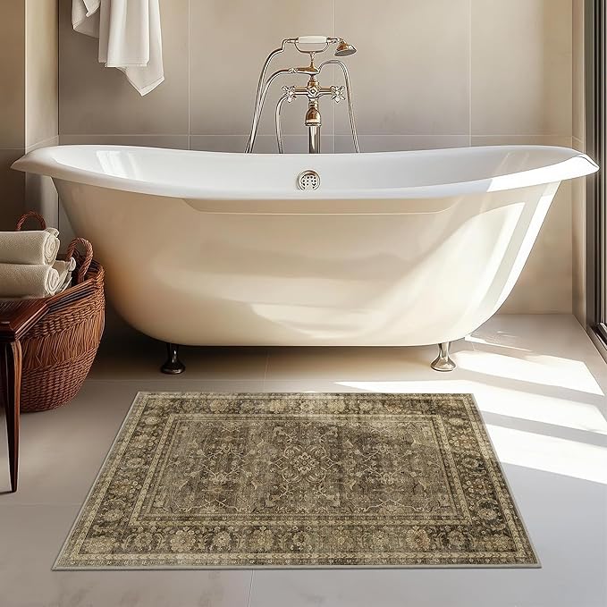 HelloTree 2x3 Entryway Rug Washable Vintage Print Door Mat Kitchen Rugs for Front Door Bedroom Living Room Entrance Small Soft Traditional Distressed Carpet Folable for Room Bedside-Brown