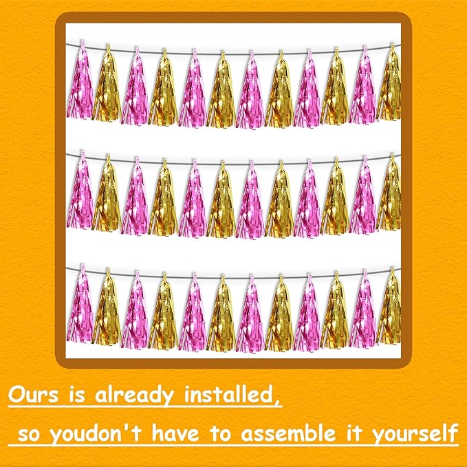 - 【Package Includes】The total length of the gold pink birthday tassels banner is 30 feet, divided into 3 strips, each 10 feet long. Each banner contains 15 tassels, and each tassel measures 14 inches, for birthday decorations many occasions uitable for Patriotic display, Homecoming Float, Christmas Float, ecorative metal trailers, graduation floats etc