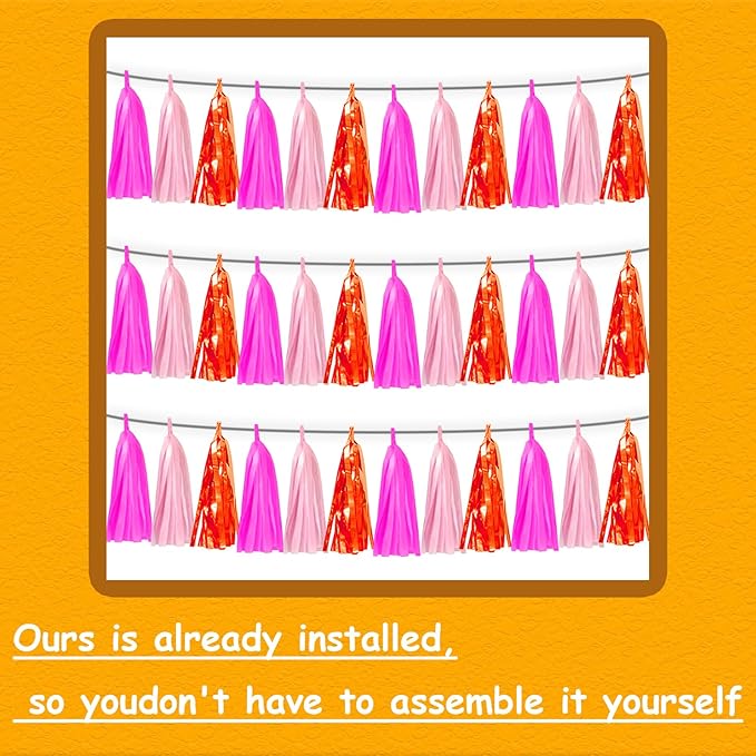 - 【Package Includes】The total length of the Hot Pink Orange LightPink birthday tassels banner is 30 feet, divided into 3 strips, each 10 feet long. Each banner contains 15 tassels, and each tassel measures 14 inches, for birthday decorations many occasions uitable for Patriotic display, Homecoming Float, Christmas Float, ecorative metal trailers, graduation floats etc