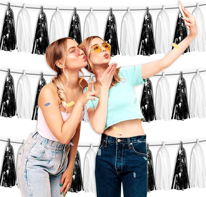 - 【Package Includes】The total length of the Black White birthday tassels banner is 30 feet, divided into 3 strips, each 10 feet long. Each banner contains 15 tassels, and each tassel measures 14 inches, for birthday decorations many occasions uitable for Patriotic display, omecoming Float, Christmas Float, ecorative metal trailers, graduation floats etc