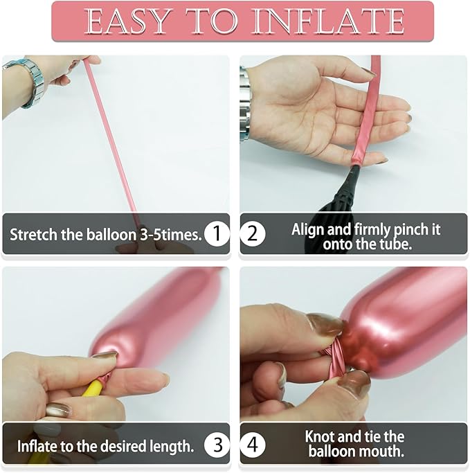 - Durable Magic Long Balloons: The metallic long twisting balloons are made of high-quality metallic latex material, these long twisting balloons offer exceptional durability and flexibility. The material maintains its brilliant shine while being less likely to pop. They are designed for easy blowing, whether using a manual/electric balloon pump(not included) or your own lungs, making them ideal for both beginners and professionals.